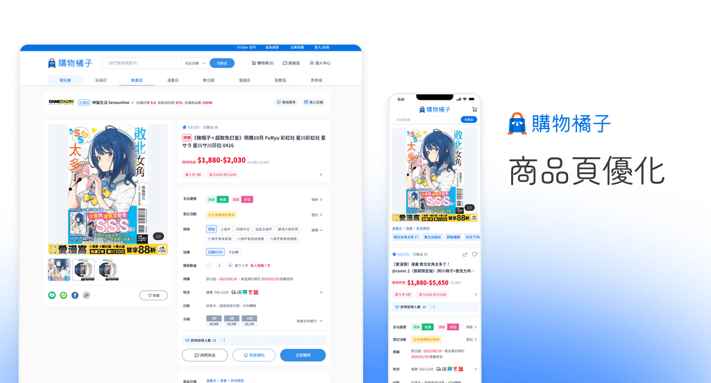 與 PM 、產品設計師進行用戶訪談、競品分析等前期研究。並訂定目標 : 統一站上頁面設計語彙、優化整體購買流程、減少跳出率、強化網站主要業務,重新規劃登入頁、首頁、線上抽、分類頁、商品頁、訂單、店鋪後臺、內部後臺等頁面。並共同驗收測試產品。