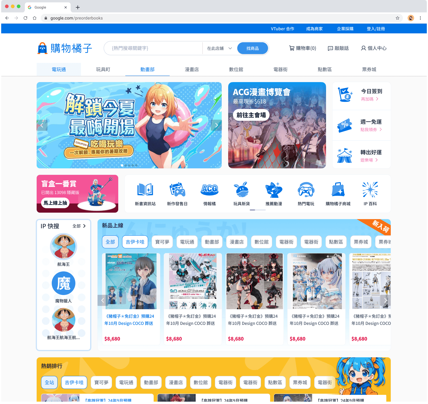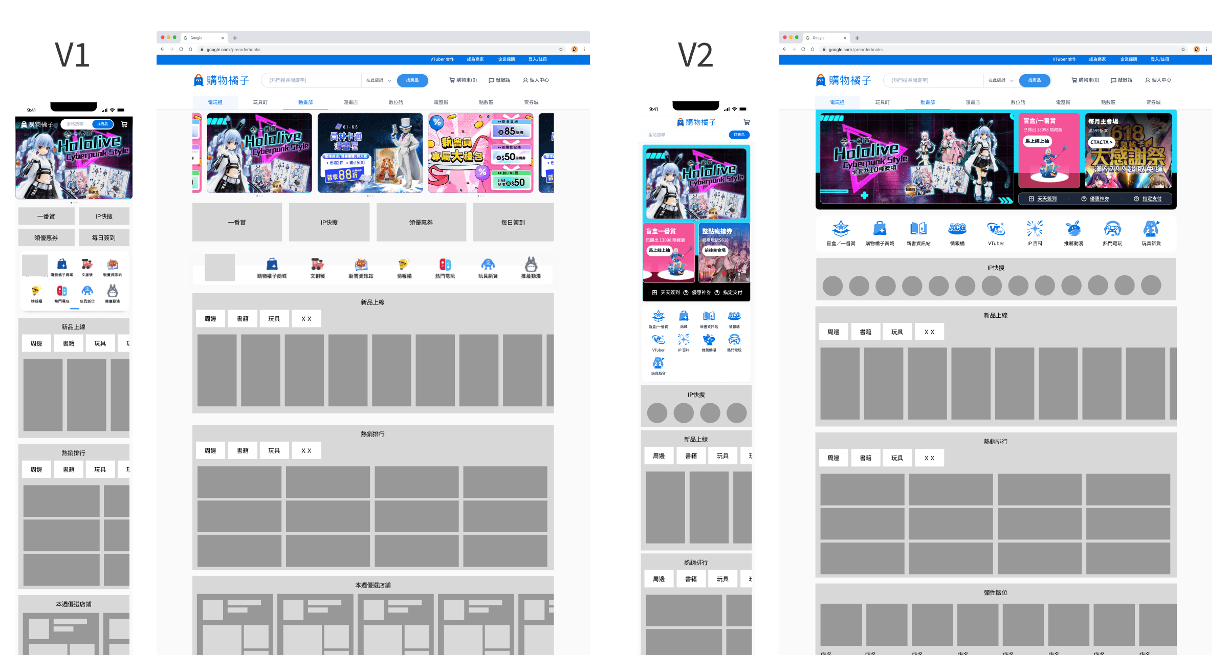 將站上重大功能羅列出來,盲盒/一番賞也可以發展為一個版位而非只是一個入口;簽到/領券 等在MB TABBAR成效好 因此可以不調整。