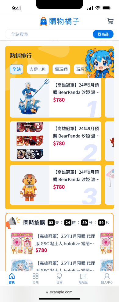 現有熱門搶購有點發散,可考慮新增(主題)分類板塊並顯示各分類的熱門商品顯示何種分類也可以個人化。